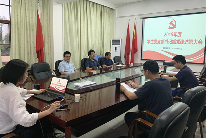 近日,文学院召开2019-2020学年党支部书记抓基层党建述职评议会议,会议由学院党委书记李建华主持,全体院党委委员、师生党支部书记参加会议。会议以线上线下相结合的方式进行。