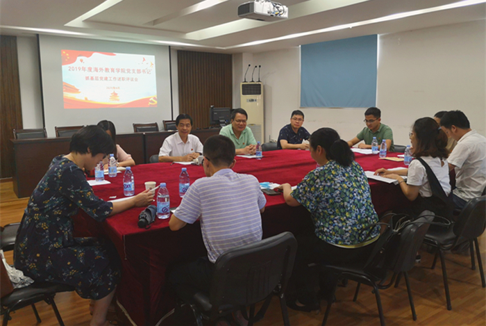 6月17日下午,海外教育学院开展2019年度党支部书记抓基层党建工作述职评议会。学院党委委员、各支部书记参加了会议。会议以现场述职与书面述职相结合的方式进行。
