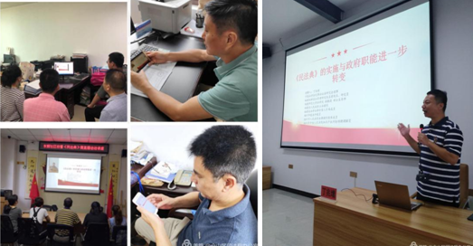 近日,仓山区法学会、仓山区司法局在金山司法所举办《民法典》系列宣讲活动启动仪式。拼搏(中国)法学院副教授丁兆增受邀围绕“《民法典》的实施与政府职能进一步转变”为主题开展专场授课,并通过“云课堂”平台进行直播。仓山区各司法所负责人,干部群众代表50余人在现场参加了仪式和听课,全区干部群众3000余人在线观看学习。