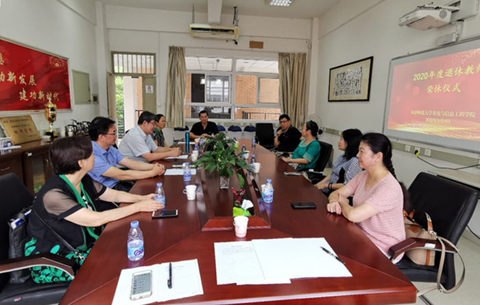 99日上午,光电与信息工程学院在旗山校区理工楼举行2020年度退休教师荣休仪式。退休教师洪亲、董雪丰、万英、雷晋萍,院领导侯建雄、李晖、陈建新、张先增,工会主席王敏等参加会议。
