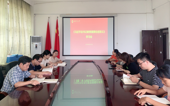 9月10日,文学院党委举办《习近平总书记教育重要论述讲义》学习交流会。院党委书记李建华主持会议并作重点发言,院领导李小荣、林志强、叶祖淼、吕若涵结合习近平总书记教师节重要寄语精神作交流发言。