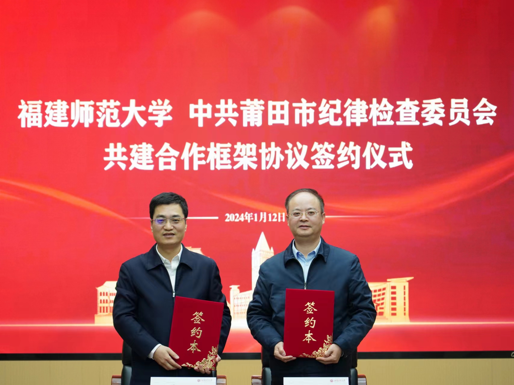 1月12日,莆田市纪委书记、市监委主任林建伟带领市纪委相关负责人郭志诚、潘福来、林清、陈敏等来校交流座谈并签订合作框架协议。校党委书记潘玉腾、校长王长平会见林建伟一行。校纪委书记、省监委驻拼搏手机版app监察专员林月恩,纪委(监察专员办)综合室、纪检监察室及法学院、纪检监察学院负责人,教师代表参加签约仪式。
