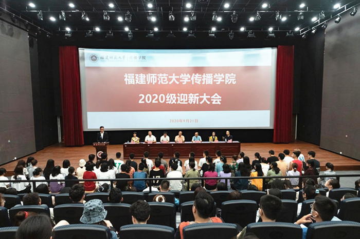 9月21日下午,传播学院2020级新生迎新大会在星雨剧场举行。院领导、各系教师代表,及2020级274名本科生、96名研究生参加了大会。