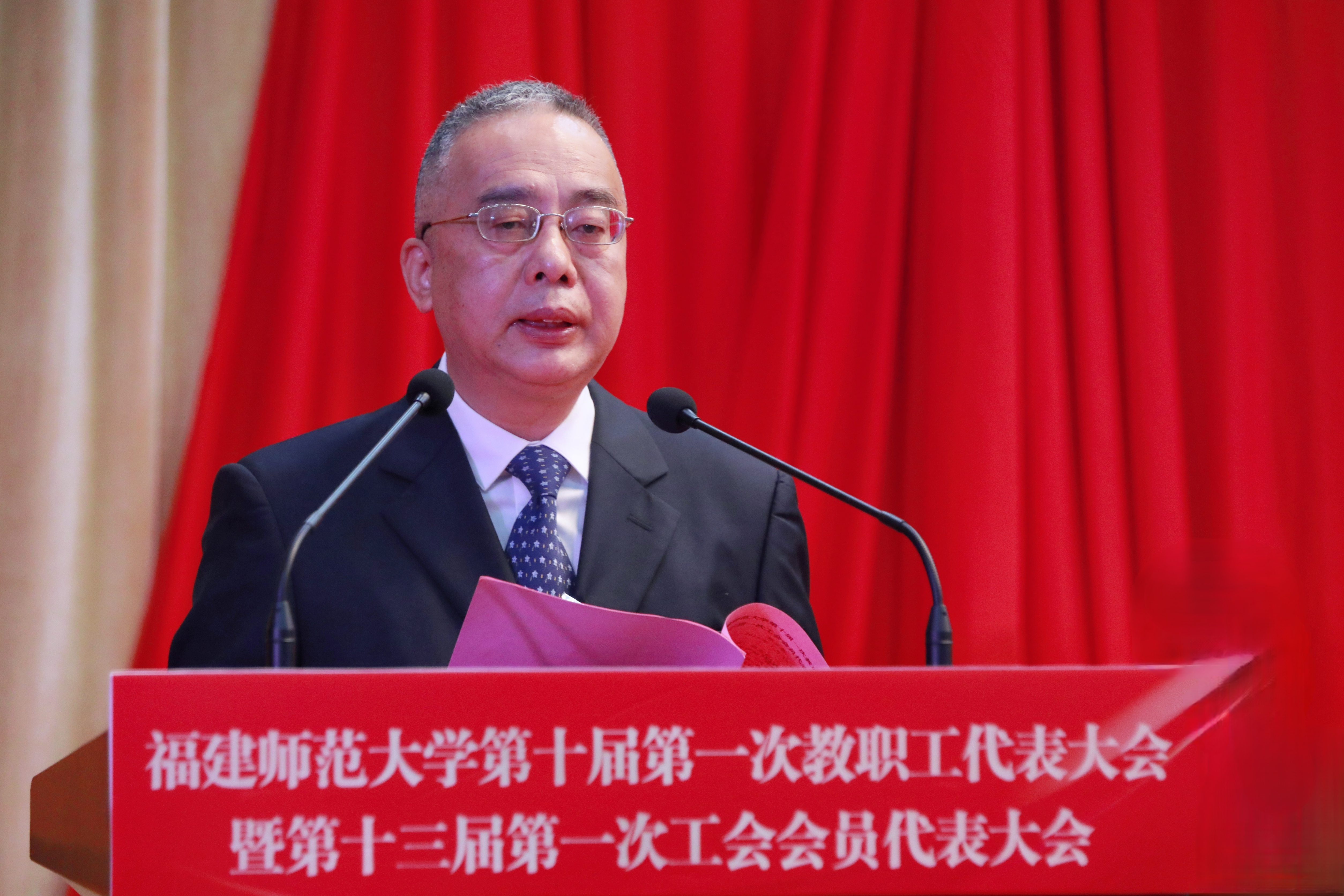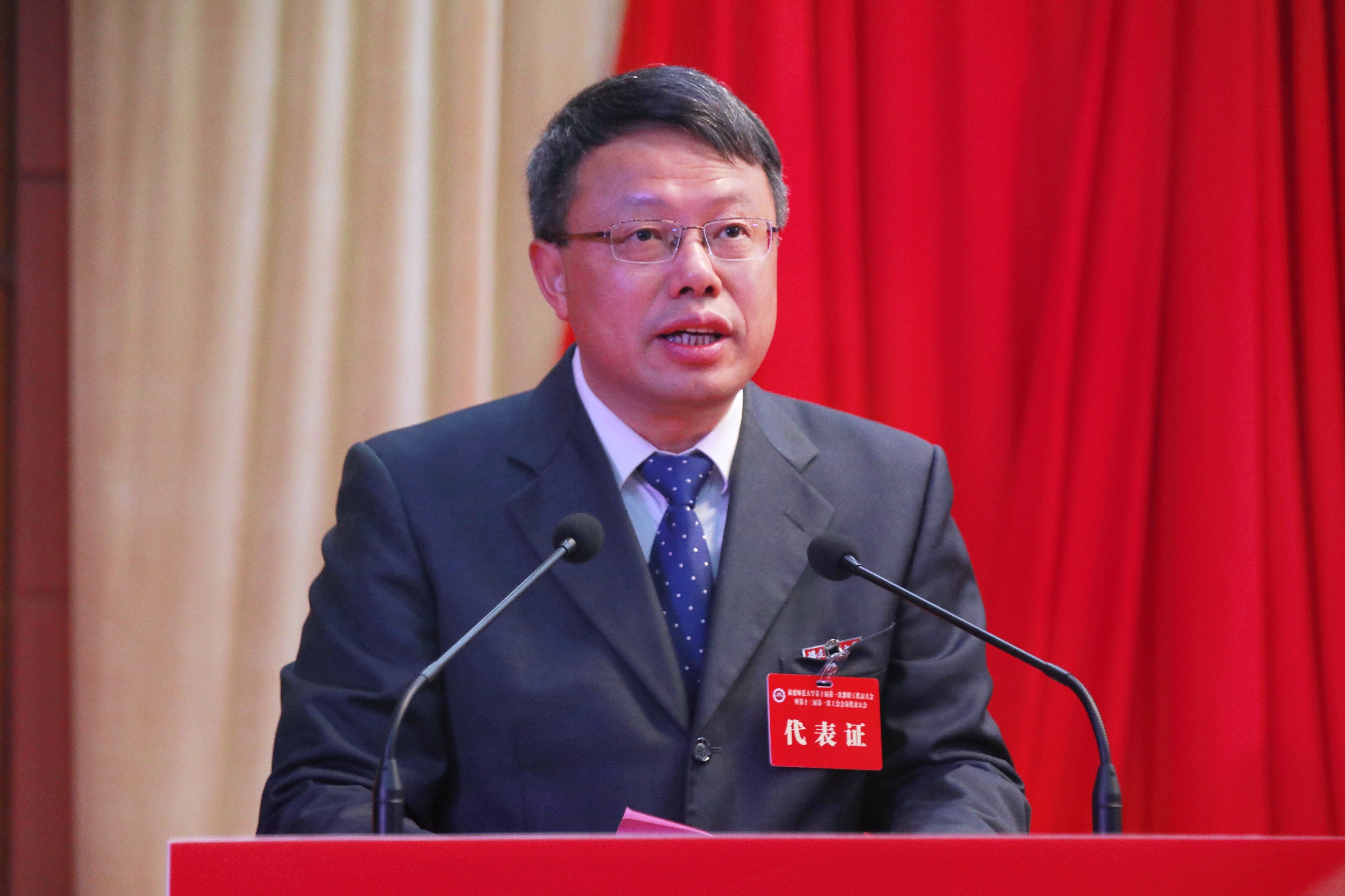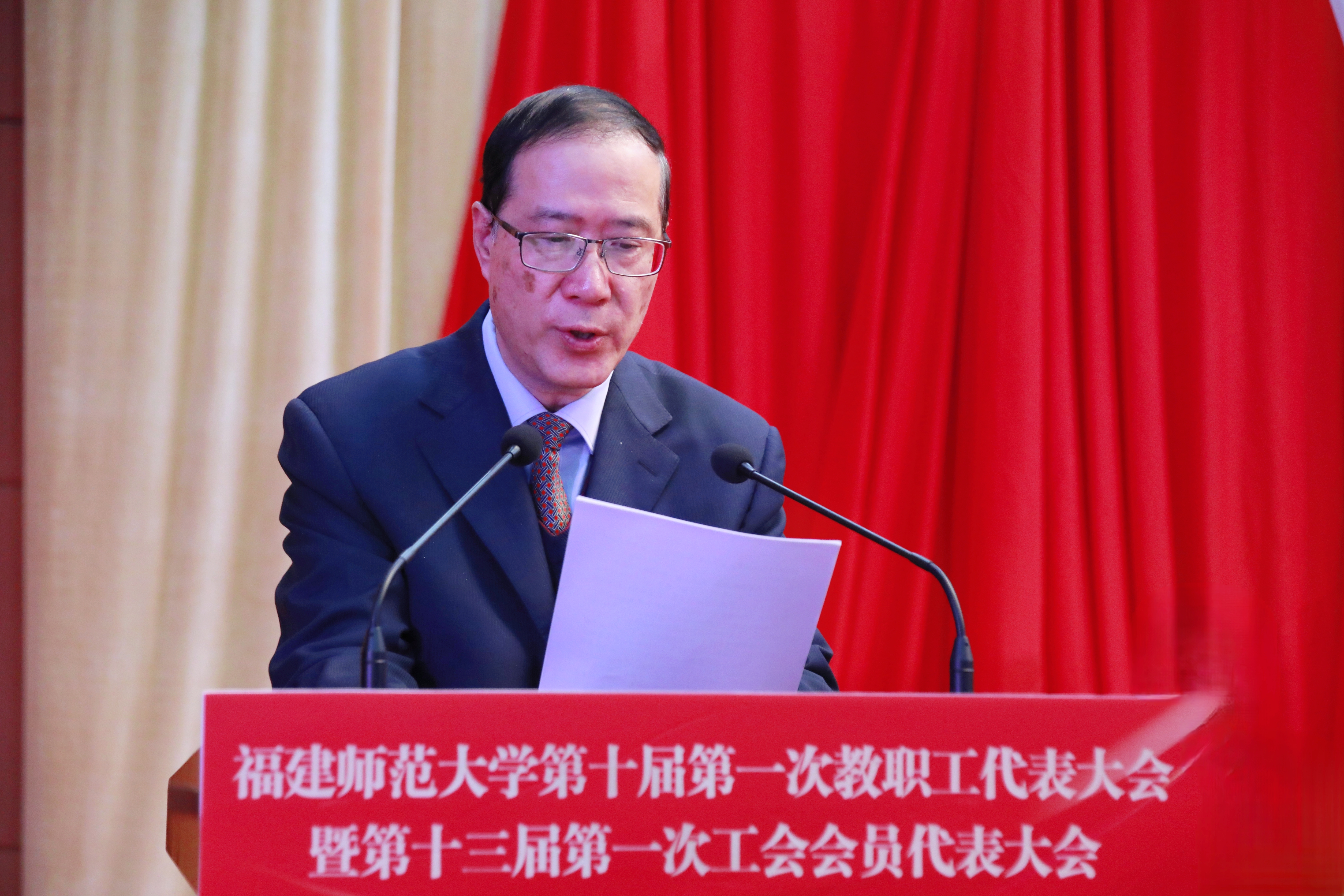 潘玉腾在闭幕式上讲话中充分肯定了大会所取得的成果,要求教代会、工会强化政治引领,凝聚奋斗伟力;夯实工作根基,提升服务质效;主动担当作为,谱写发展新篇,为学校“双一流”建设提供坚强保障和不竭动力。他强调,全体代表和广大教职工要以习近平新时代中国特色社会主义思想为指导,全面贯彻落实党的二十大精神,认真贯彻落实习近平总书记关于教育的重要论述,弘扬爱拼敢赢的精气神,拿出奋勇争先的大气魄,加快推进“双一流”特色建设、高质量建设,为奋力谱写全面建设社会主义现代化国家福建篇章作出新的更大贡献!