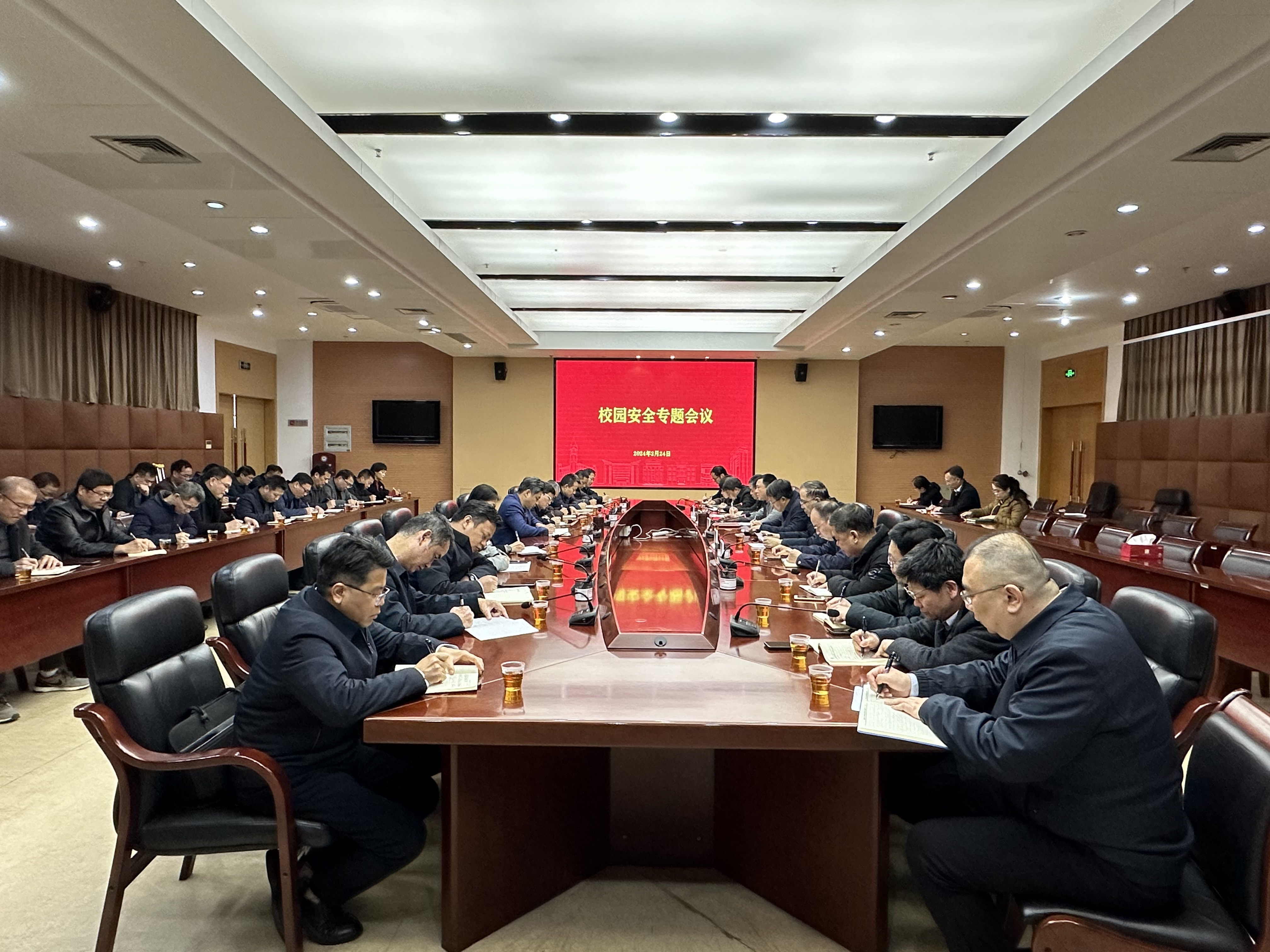 校党委书记潘玉腾指出,南京市雨花台区“2·23”火灾事故给我们敲响了警钟,全校上下要从中汲取深刻教训,时刻保持清醒的头脑,扎实做好校园安全各项工作,全力保障师生生命财产安全。一是思想认识要真重视,深刻认识到校园安全是红线、底线、生命线,始终绷紧安全稳定这根弦,持续强化问题意识、忧患意识、责任意识,抓紧抓实抓细各项具体工作;二是落实部署要真到位,坚决落实好学校党委工作部署,坚持解放思想、创新思路举措,切实把电动自行车专项治理等工作抓出高水平、抓出好成效;三是整治防范要真彻底,精心筹备上好“开学安全教育第一课”,着力推动安全意识、安全知识入脑入心,紧盯重点领域深入开展拉网式大排查,坚决做到心中有数、整治有力、防范有方,切实将矛盾化解在萌芽状态;四是工作责任要真压实,全校各单位、各级领导干部要以“时时放心不下”的责任感和“事事落实到位”的执行力,力戒形式主义、官僚主义,主动扛起责任、着力推动落实,全力以赴抓好校园安全各项工作落实,坚决维护校园安全稳定。王长平结合近期校园检查发现的问题,对各单位全面落实校园安全工作责任提出明确要求,强调各单位要以高度的政治责任感和使命感,主动担当作为,注重实际效果,切实把工作做到位、把风险化解掉、把问题解决好,确保师生平安校园和谐。