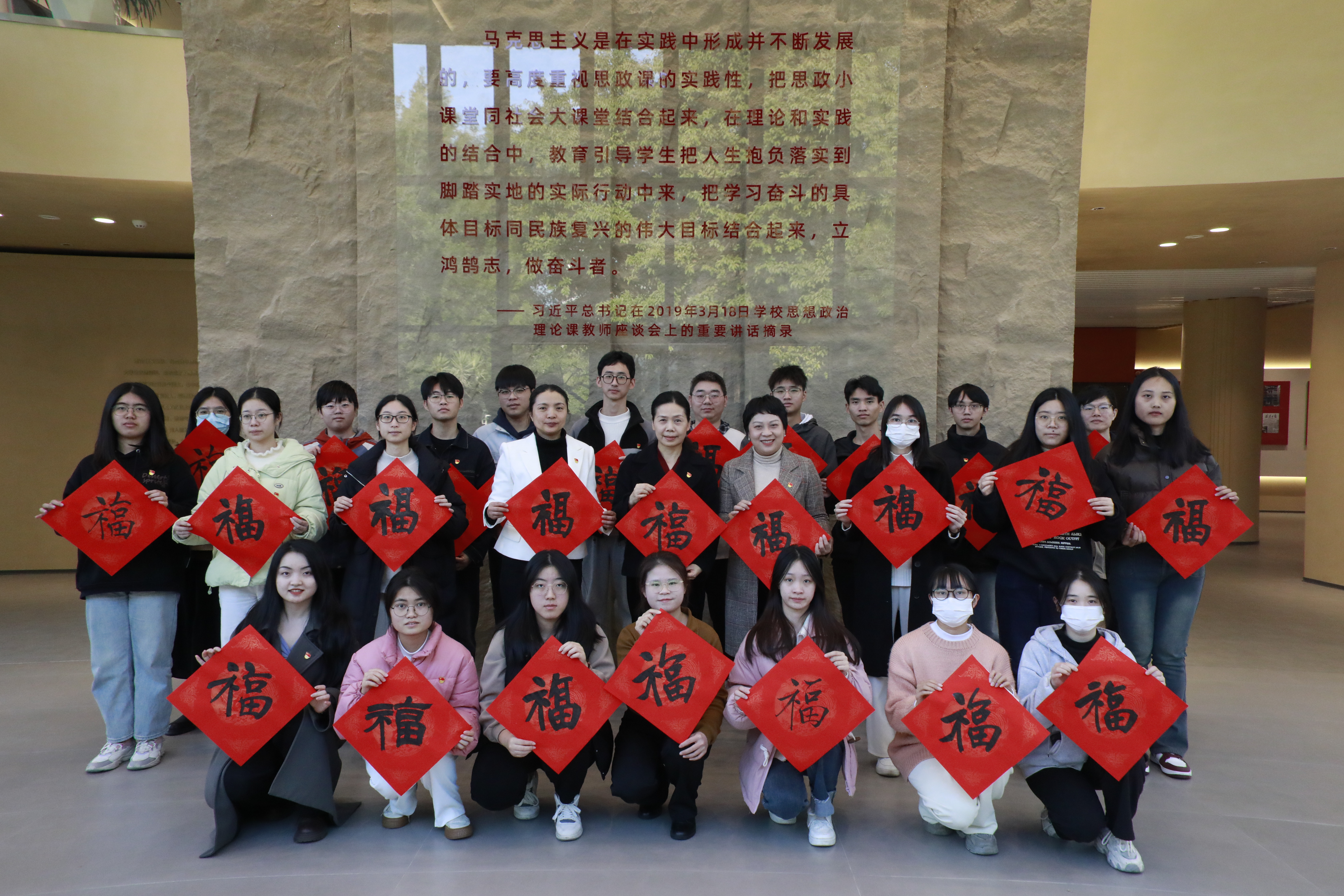 会上,与会领导逐一为生活困难学生党员送“福”并拜早年。会前,生活困难学生党员参观了学校新时代大学生社会大课堂实践中心。