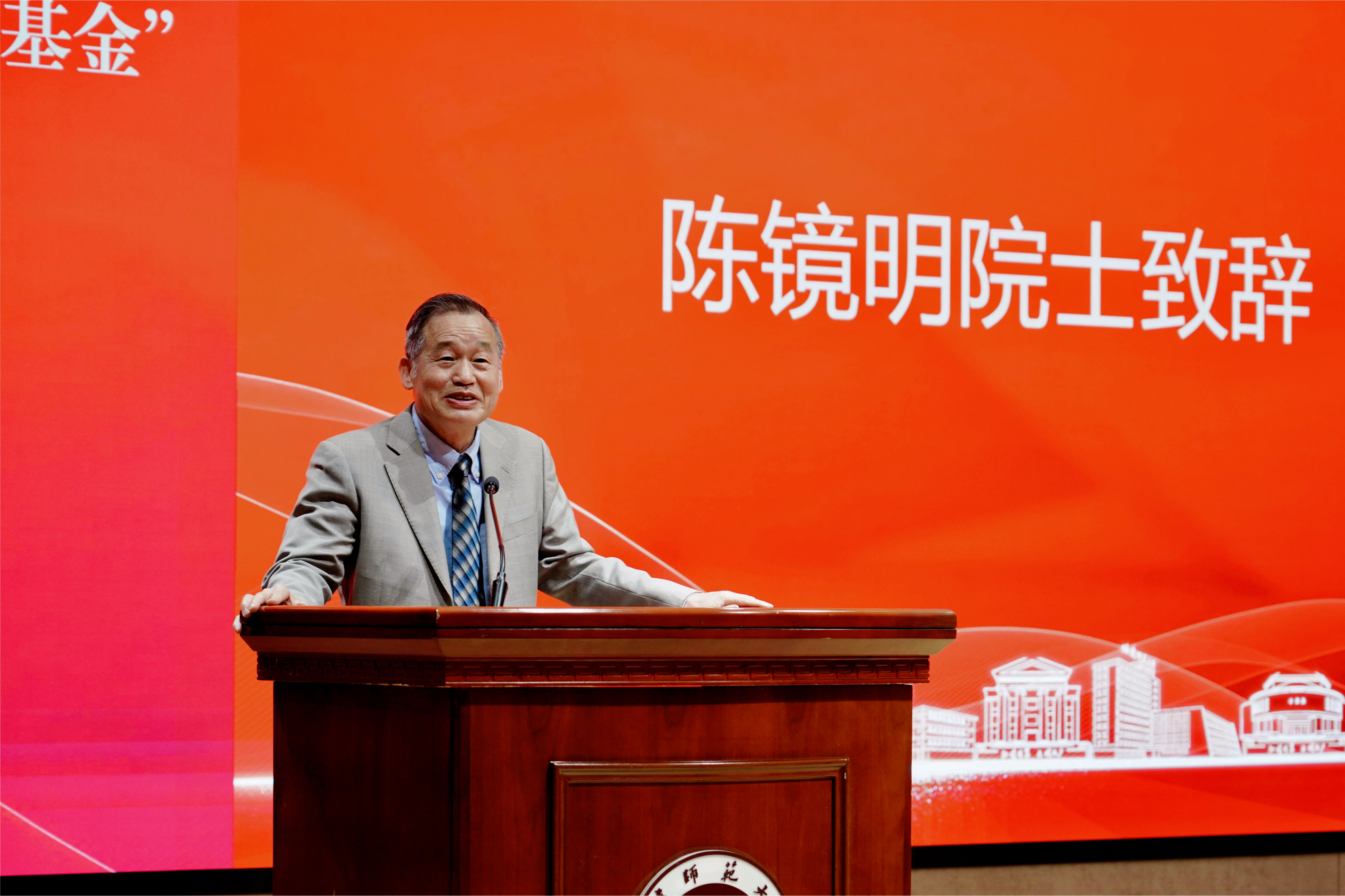 仪式于3月20日在旗山校区宏达厅举行。加拿大皇家科学院院士、地理科学学院陈镜明教授、柳竞先教授伉俪,校纪委书记、省监委驻拼搏手机版app监察专员林月恩,党政办公室、宣传部、统战部(校友会)、教师工作部、学生工作部、财务处、学校教育基金会负责人,以及地理科学学院、碳中和未来技术学院负责人和师生代表参加了仪式。