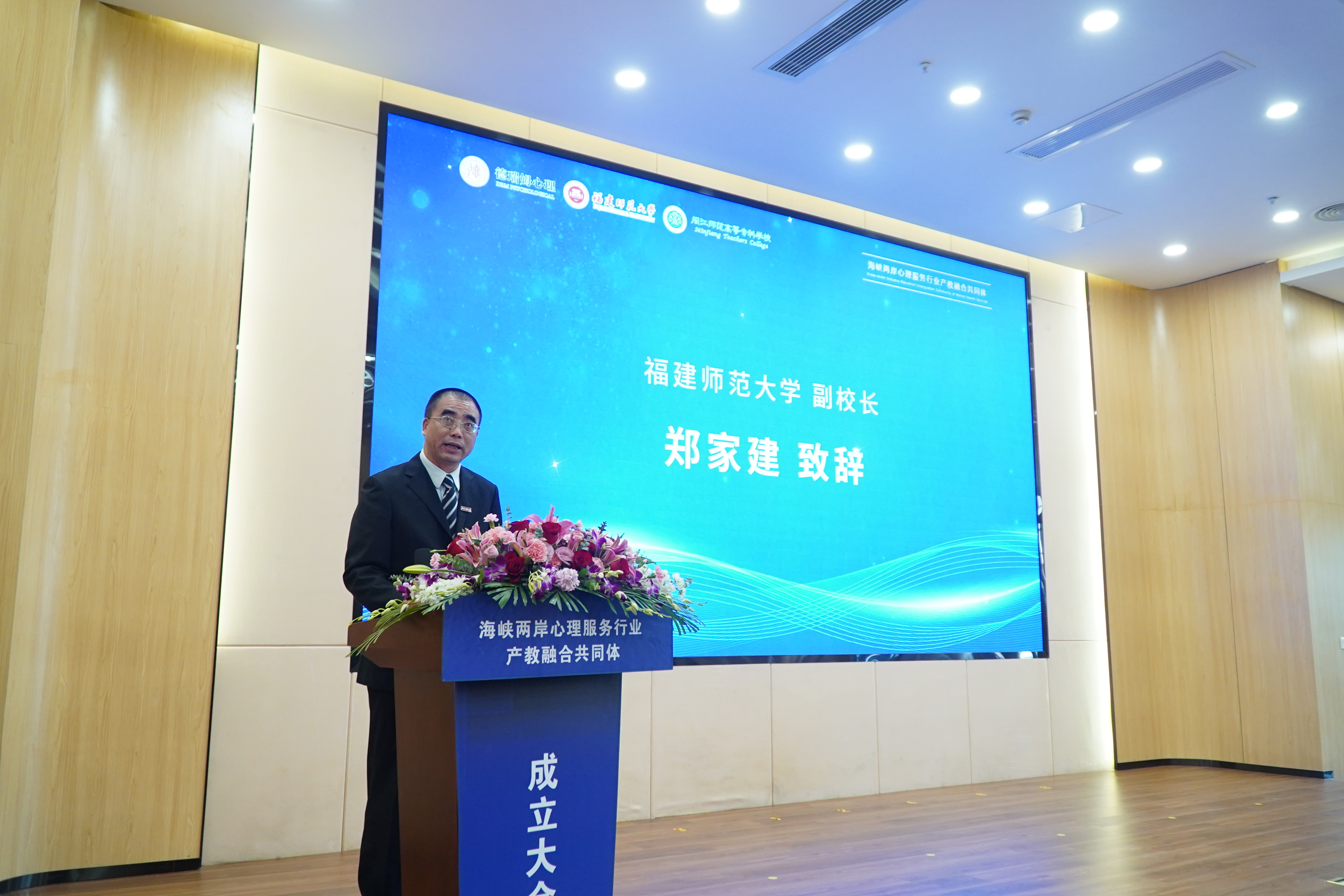 郑家建在致辞中指出,共同体由拼搏(中国)与闽江师范高等专科学校、上海心融健康科技股份(德瑞姆心理学院)有限公司牵头,联合全国相关行业组织、本科院校、职业院校、科研机构和企事业单位等自愿组成的非独立法人组织,首批共同体成员单位覆盖海峡两岸98家心理服务相关单位。他表示,成立海峡两岸心理服务行业产教融合共同体,是贯彻落实中共中央、国务院《关于支持福建探索海峡两岸融合发展新路 建设两岸融合发展示范区的意见》的务实举措,是一次跨行业、跨领域、跨地域的大胆尝试,也是践行“两岸一家亲”理念的生动实践,对于推动心理服务产业链、供应链、教育链深度融合和有机衔接,健全和完善社会心理健康和精神卫生服务,深化海峡两岸心理服务领域融合发展,具有重要意义。