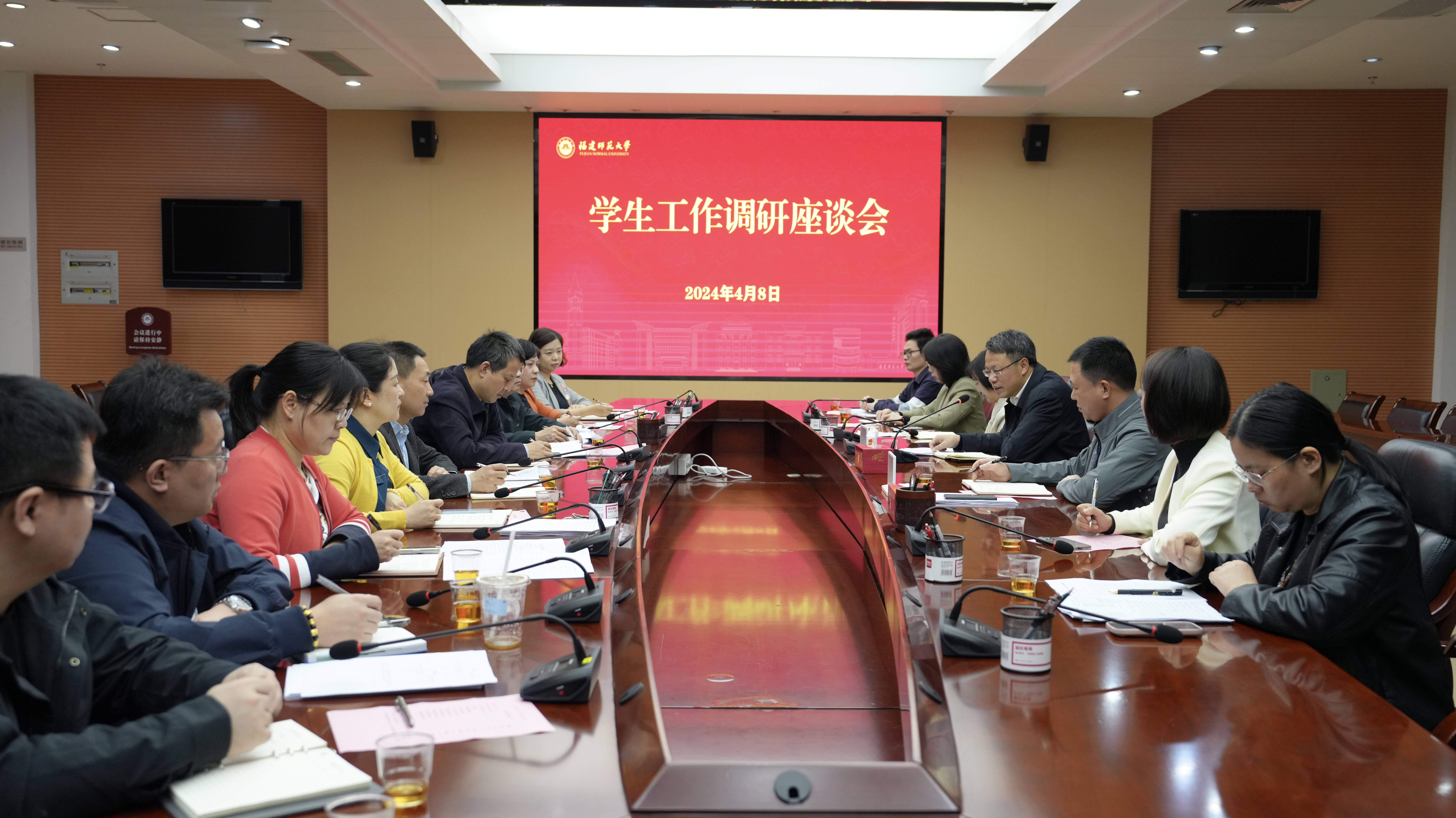 座谈会于4月8日在旗山校区召开,校党委书记潘玉腾、副书记涂荣,学生工作部科级以上干部、辅导员协会部分成员参加会议。