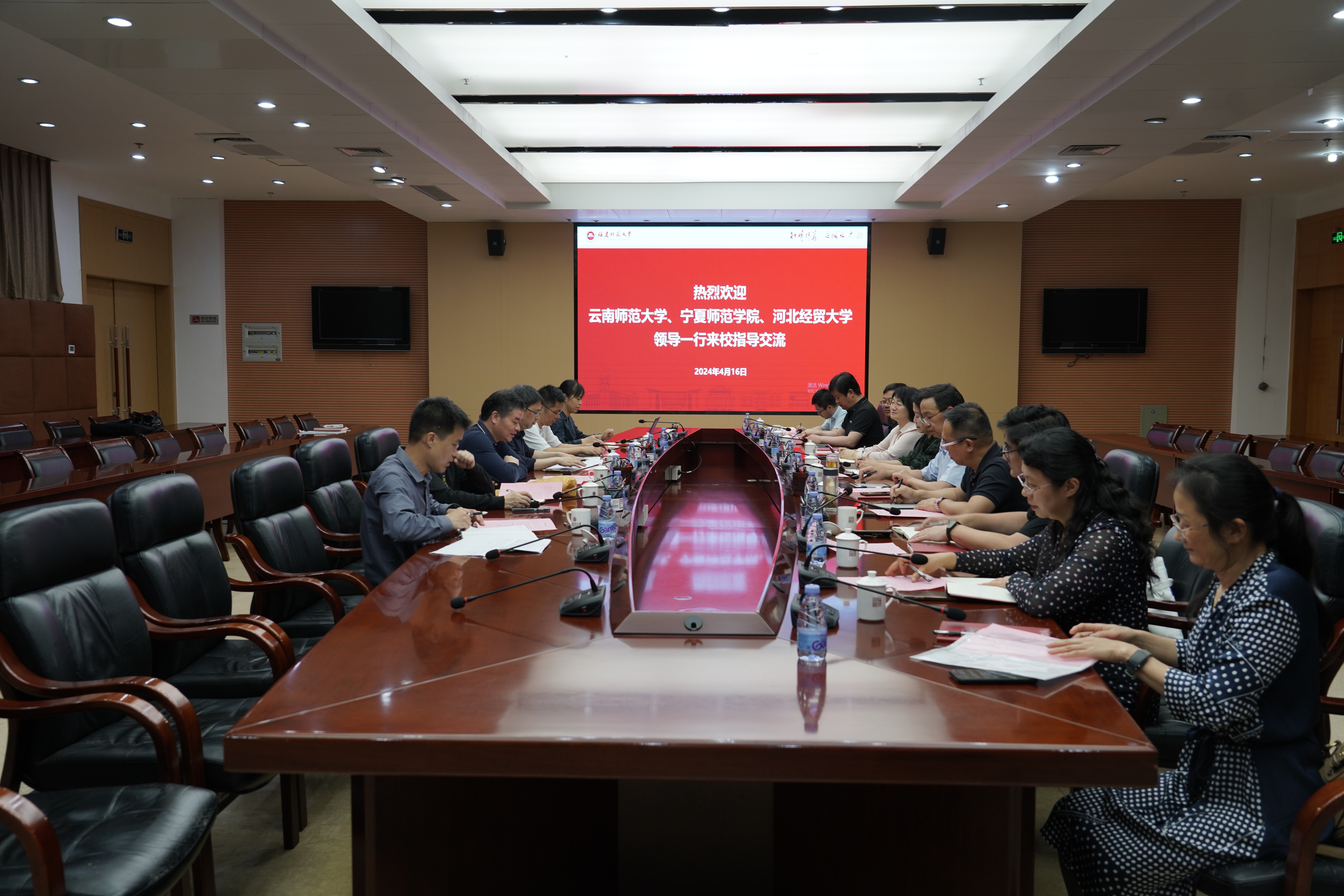 4月16日,云南师范大学副校长陈正权、宁夏师范学院纪委书记虎玉赟分别带队来校调研,副校长吴剑锋,相关职能部门、学院负责人陪同调研。会上,双方围绕本科教育教学审核评估、人才培养、一流专业和一流课程建设、智慧教育实践、协同提质等方面进行了深入交流。两所高校还参观了拼搏(中国)智慧教学园区。