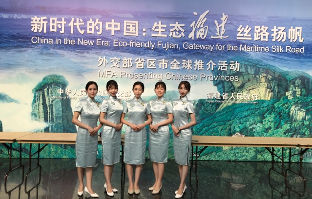 On July 5th, MFA Presenting Fujian Province, under the theme of “China in the New Era: Eco-friendly Fujian, Gateway for the Maritime Silk Road” was successfully held in Lanting of Ministry of Foreign Affairs. 6 student volunteers of FNU were selected as guides responsible for introducing Fujian to guests around the subjects of Endeavour Story of Fujian, Green Development, Prosperity of the Maritime Silk Road, Integrated Development of Fujian and Taiwan, and Exhibits of Intangible Cultural Heritage, etc.