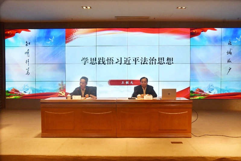 At the seminar, Professor Wang Minfu made a comprehensive and systematic exposition of the rich connotation, core essence and practical requirements of Xi Jinping Thought on the Rule of Law from three aspects: the theoretical origin of Xi Jinping Thought on the rule of law, the significance of Xi Jinping Thought on the rule of law as the fundamental principle and action guidelines for the comprehensive low-based country governance in the new era, and the leading role of Xi Jinping Thought on the rule of law in promoting the further construction of the rule of law in the new era. The seminar boasts a clear theme, a broad vision, a wide range of references, and a profound understanding and is acclaimed as both not only political and theoretical, but also historical and practical. It is not only a political and theoretical course, but also a legal and practical course that highlights the law and promotes knowledge. It is of great guiding significance to help faculty and students in our university to further understand Xi Jinping Thought on the Rule of Law and the spirit of July 1 speech.