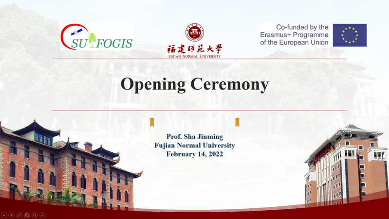 Recently, the EU ERAMUS+ Programme SUFOGIS (GIS and Remote Sensing for Sustainable Forestry and Ecology, 598838-EPP-1-2018-EL-EPPKA2-CBHE-JP) Winter Online Training Course, undertaken by School of Geographical Sciences of FNU, has started. The opening ceremony, presided over by Professor Sha Jinming from School of Geographical Sciences of FNU, was attended by 216 students and teachers from universities and research institutes in China, including Zhejiang University, Aerospace Information Research Institute of Chinese Academy of Sciences, Tibet University, Yanbian University, Yangtze Normal University, Xiamen University of Technology, Guizhou Education University and FNU, as well as from foreign universities, such as National University of Malaysia, Volga State University of Technology, University of Delhi and University of Nigeria.