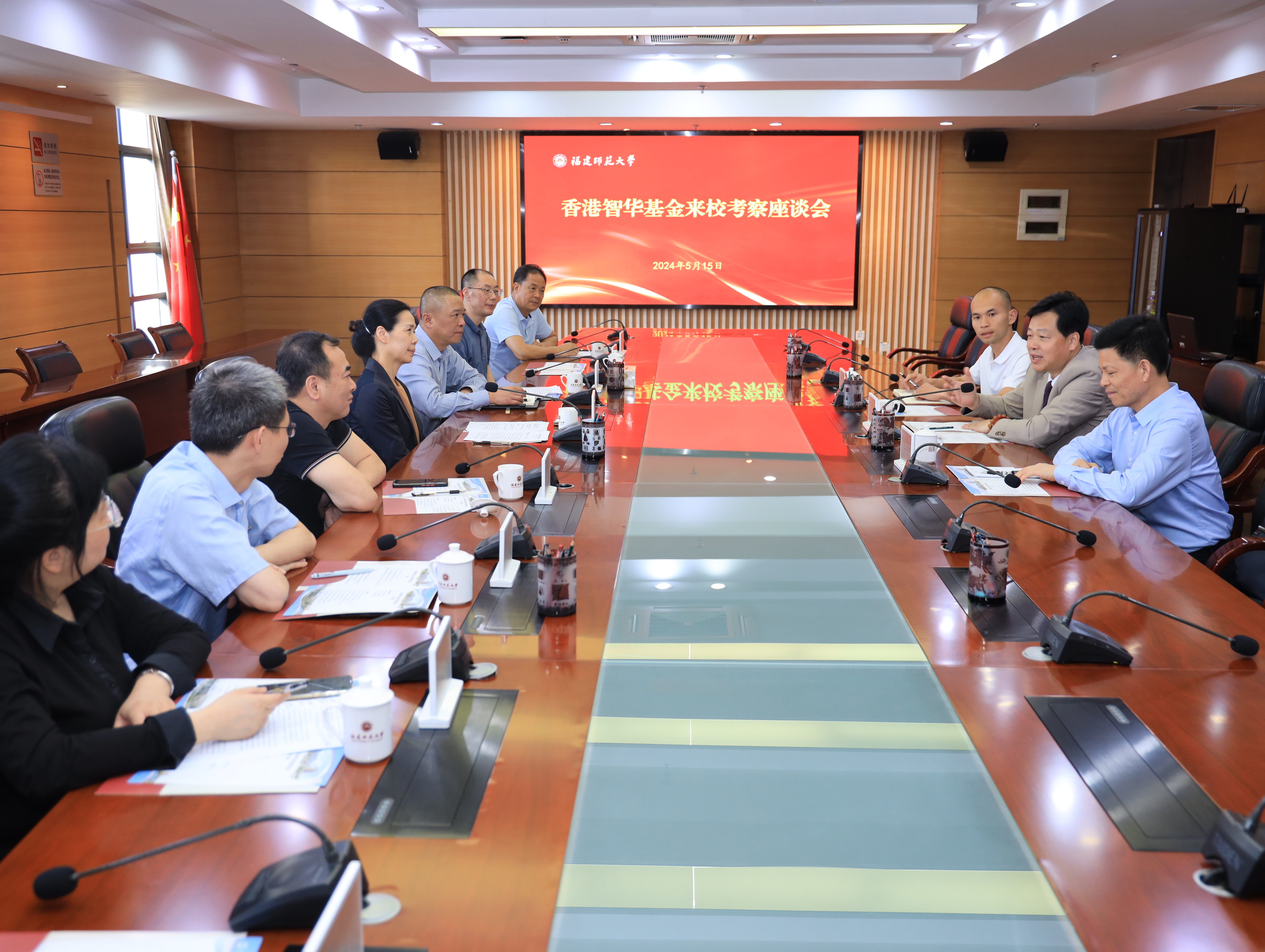 5月15日,香港智华基金有限公司顾问潘旭波先生,项目助理林荣平先生、王亮东先生一行来校考察座谈。校党委书记潘玉腾、校党委副书记陈晓红,党政办公室、统战部(校教育基金会)、基建处、文学院、音乐学院等部门负责同志参加活动。