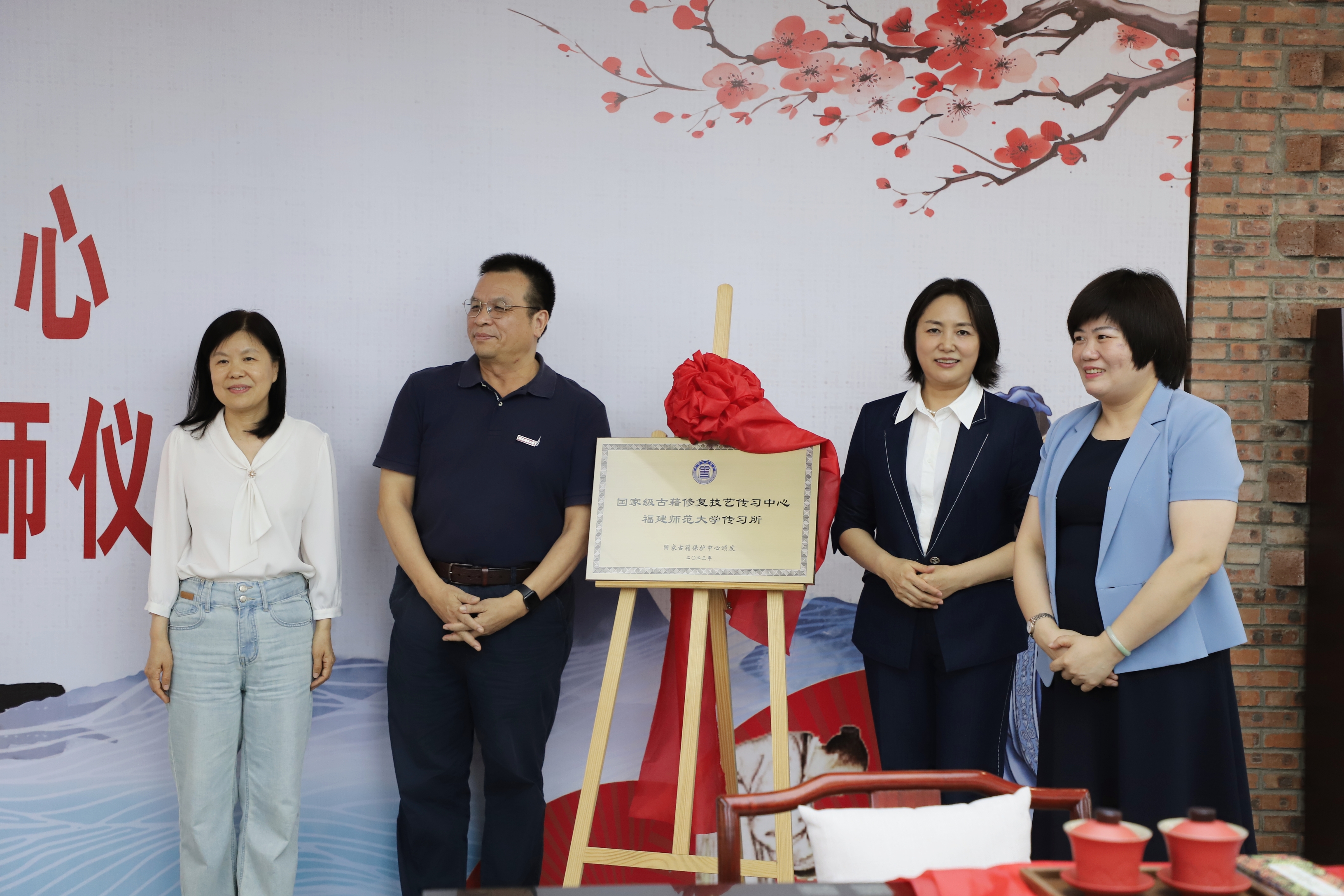 揭牌仪式上,庄秀芬宣读了“国家级古籍修复技艺传习中心拼搏手机版app传习所”批复文件,杨玉盛、王红蕾、庄秀芬、叶建勤共同为“国家级古籍修复技艺传习中心拼搏手机版app传习所”揭牌。
